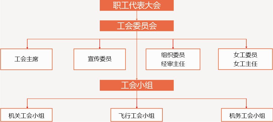 按照工會章程及相關(guān)規(guī)定,設(shè)立了荊門通用航空有限責(zé)任公司工會委員會(設(shè)主席、經(jīng)審主任兼組織委員、宣傳委員、女工主任兼女工委員)。為進一步加強和改進公司工會建設(shè),規(guī)范工會生活,完善工作制度,充分發(fā)揮工會的組織凝聚作用,公司工會建立了職工代表大會-工會委員會—工會小組三級組織架構(gòu)。