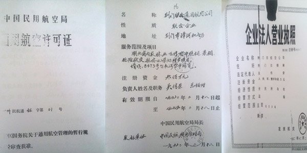 1992年2月18日,公司取得中國民航廣州管理局頒發(fā)的中國民航局通用航空許可證(民航通證字第01號(hào)),12月2日,公司進(jìn)行資產(chǎn)評(píng)估,注冊(cè)資本增至1900萬元。