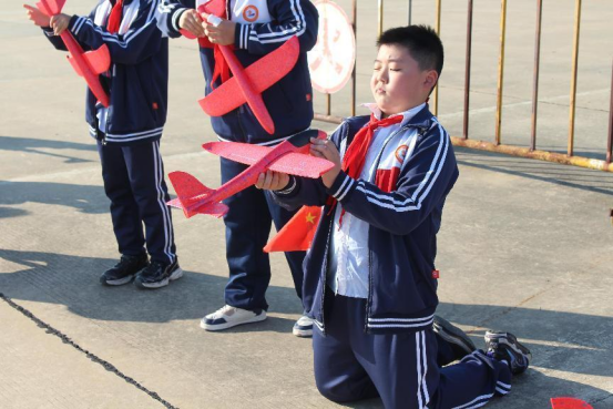 隨后來到了最讓學(xué)生們激動的環(huán)節(jié)了,同學(xué)們一個個臉上洋溢著快樂的笑容,緊張有序的登上飛機。有的坐在駕駛位上,腦海中模擬開飛機的場景,嘴角不時露出得意的微笑;有的注視著飛機的儀表盤,眉頭緊鎖、若有所思;有的對機上設(shè)備駐足查看,頗具好奇之心。然后同學(xué)們還一起制作了飛機模型,在一片吶喊聲中,他們的飛機模型就如他們對科學(xué)的向往一樣振翅高飛。