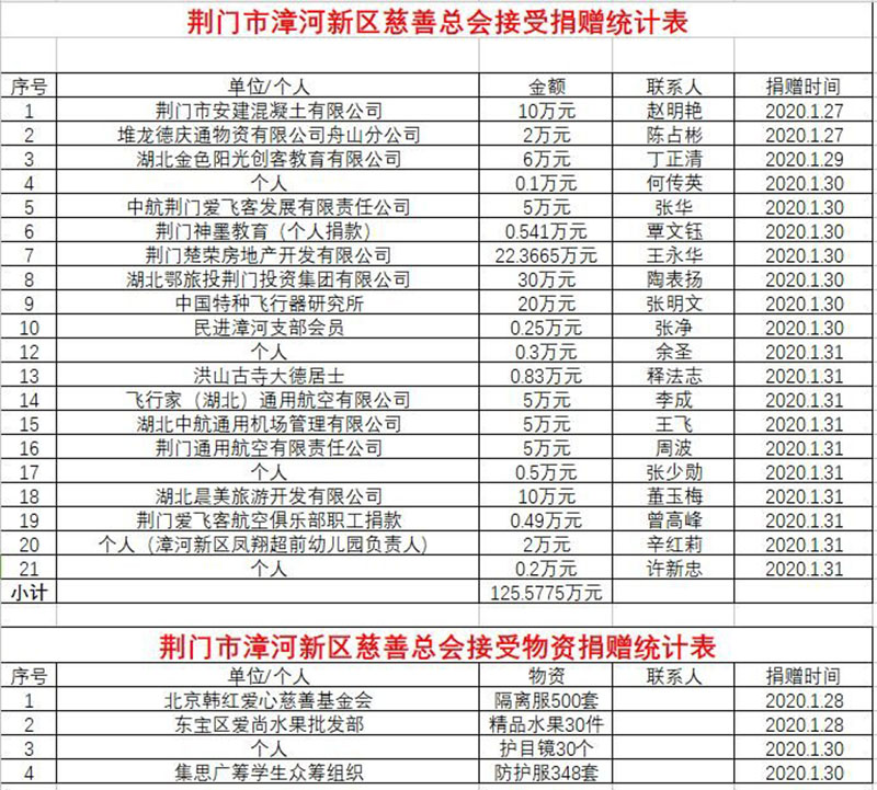 1月31日,為更好救治病患,荊門通航又響應(yīng)“一方有難,八方支援”號(hào)召,為荊門市漳河新區(qū)慈善總會(huì)捐贈(zèng)5萬(wàn)元,用于購(gòu)買各類物資。