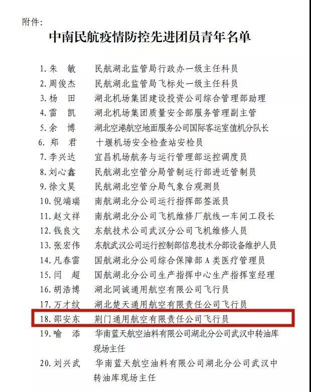 近日,從民航中南地區(qū)管理局獲悉,荊門(mén)通航飛行員邵安東同志被中南民航青年工作共建委員會(huì)評(píng)為“中南民航疫情防控先進(jìn)團(tuán)員青年”。這既是對(duì)邵安東同志的高度表?yè)P(yáng),也是對(duì)航空人參與疫情防控工作的高度認(rèn)可。