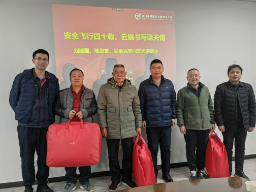12月30日,荊門通航公司2022年退休職工歡送會在公司會議室舉辦。公司董事長陳閻、總經理楊名、工會主席盧慶新及飛行員代表出席歡送會。劉建國、陳恩友、吳全民等三位退休職工參加歡送會。歡送會由工會主席盧···
